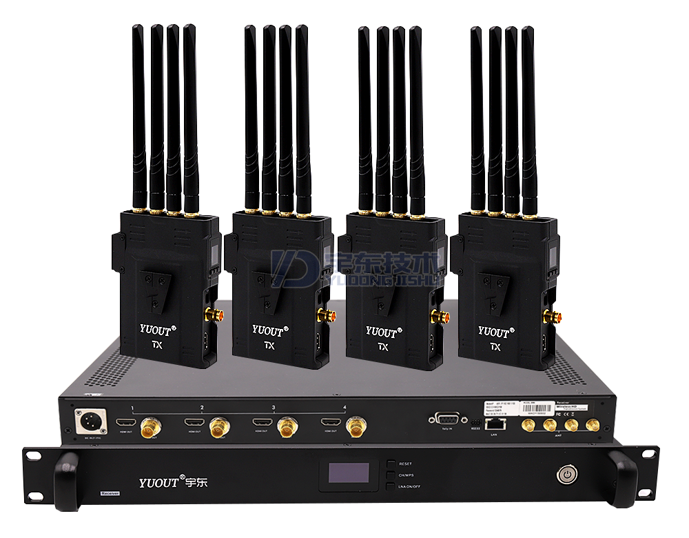 極光2000U一拖四無線圖傳采用的是4X4 MIMO方案,本產(chǎn)品包含4臺發(fā)射器和1臺接收器(集成了4個接收模塊,可以同時接收4臺不同發(fā)射機的視頻信號),并且都配備了3G/HD SDI接口和全高清HDMI接口??梢酝ㄟ^軟件配置的方式來更改天線的工作頻率,以適應(yīng)全球不同區(qū)域的無線傳輸要求。 同時,在發(fā)射器側(cè)面和接受器正面,配備了通信通道選擇按鍵,可以手動配置11個不同的通信通道,非常方便。